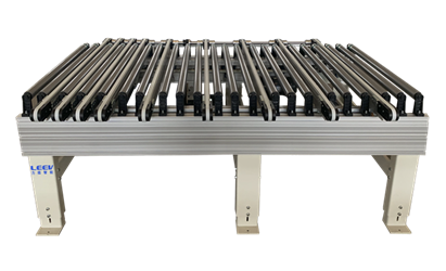 Второй популярный тип — роликовые конвейеры, часто называемые рольгангами. Как следует из названия, они состоят из роликов, расположенных рядом друг с другом. Они используются чаще для транспортировки упакованной продукции.
